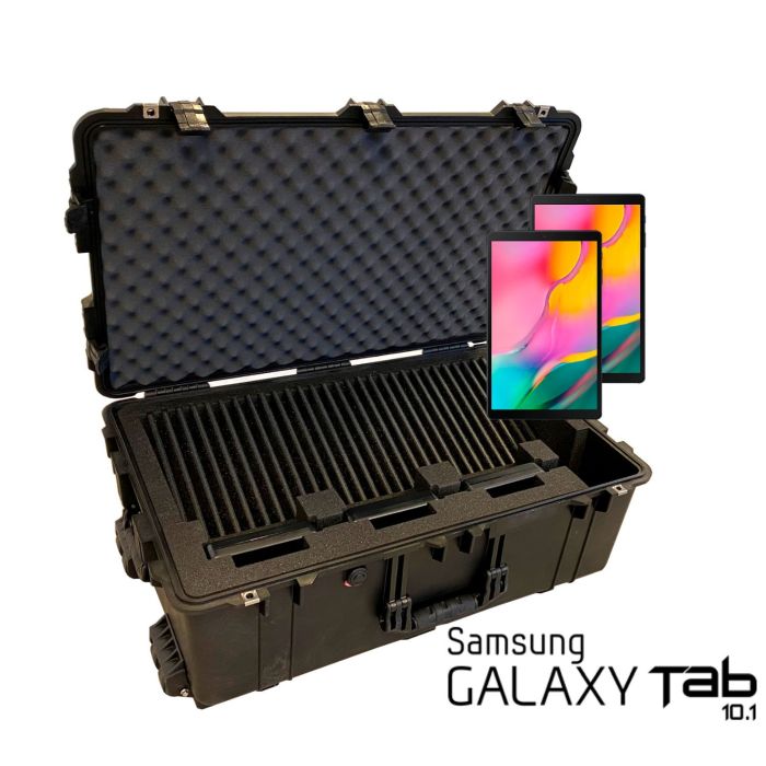 Charger Case for 30 x Samsung Tab 10.1 with dimension max 246 x 150 x 7 mm. Multiple Charge Case for up to 30 devices. This Charge Case is a robust portable case easy to move around, designed for 24 iPads, Tablets etc.