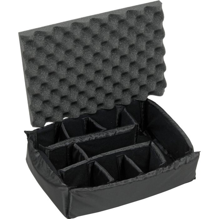 Peli 1450 Divider set. Komplet divider set for Peli 1450. Består at bundindsats med justerbare skillerum. Skillerumssættet er vaskbart nylon, hvor de justerbareskillevægge kan flyttes ved hjælp af velcro. Alle skillevægge ligesom selve bundindsatsen har indvendig skum for ekstra beskyttelse af dit udstyr. Endvidere æggebakke skum til låg. Bemærk ny farve er sort.